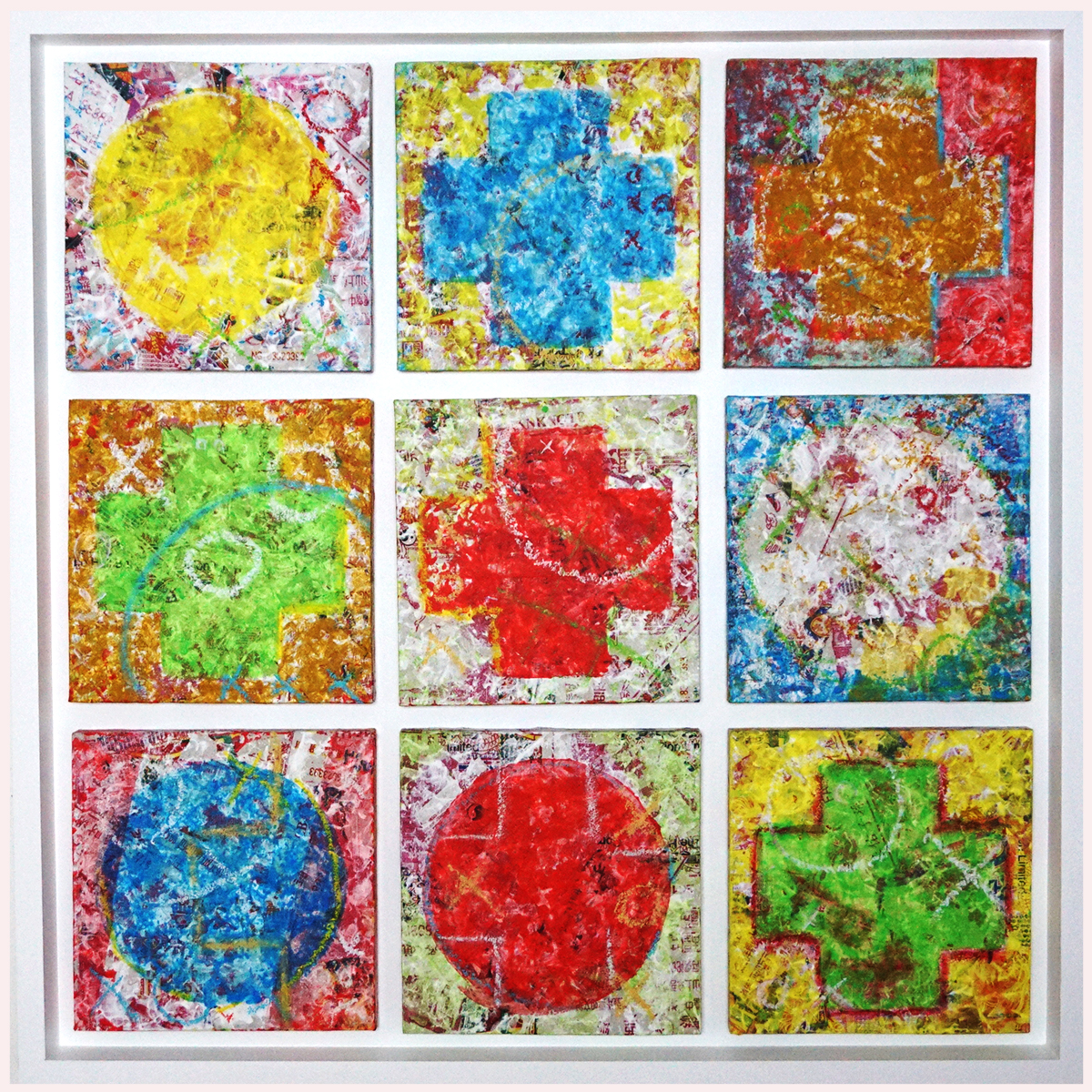 Technique: medium, papier collés, acrylique, pastel.
